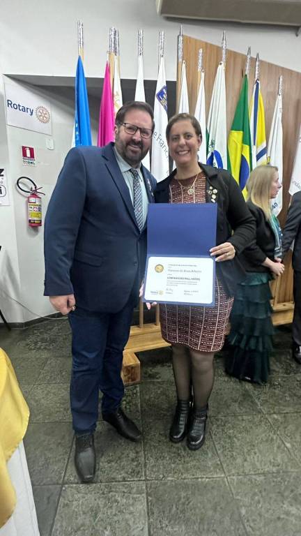 A noite foi especial, repleta de reconhecimento e emoção, com quatro companheiros sendo homenageados com a Safira e o título Paul Harris, símbolo de dedicação e serviços prestados ao Rotary e a comunidade.
