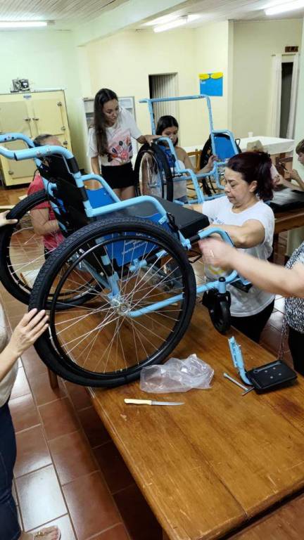 – Montagem de cadeiras: As cadeiras são entregues desmontadas e são montadas e ajustadas de acordo com o beneficiário por rotarianos;