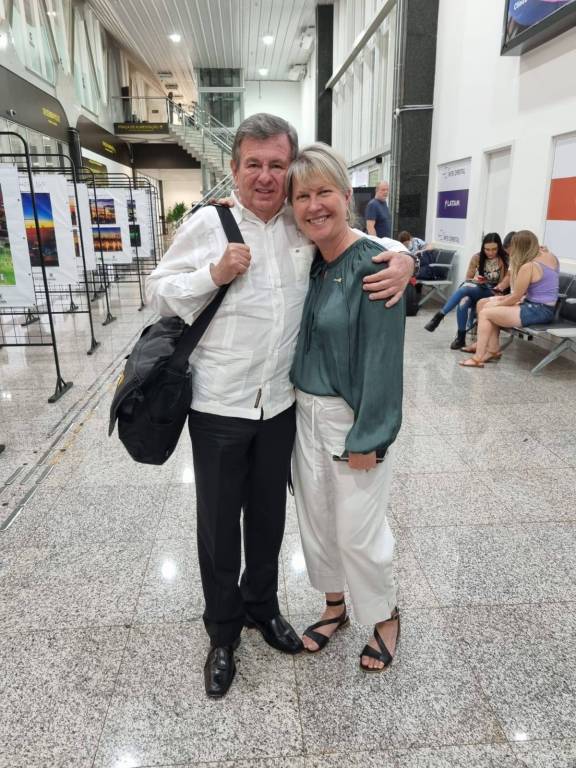 A canadense Jennifer Jones, acompanhada do marido Nick, e o peruano Julio Cesar Silva-Santisteban Ojeda vieram comemorar o centenário do Rotary no Brasil. Após a programação realizada no Rio de Janeiro, eles voaram até Cascavel/PR, onde foram recepcionados pela Governadora do Distrito, a patobranquense Anne Cristine Gomes da Silva Cavalli, e um grande grupo de pessoas no Aeroporto.