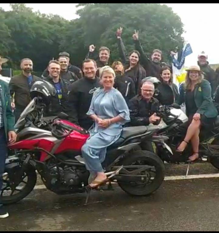À tarde, de forma inédita, o sudoeste paranaense foi visitado por uma liderança mundial do Rotary. A primeira parada foi no trevo de Realeza/PR, onde companheiros aguardavam a chegada de Jennifer e Julio com cartazes e bandeiras.