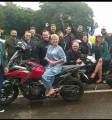 Em seguida, foram levados num carro de época até o prolongamento da Avenida Júlio Assis Cavalheiro, onde mesmo debaixo de forte chuva, outro grupo de rotarianos aguardava a passagem das autoridades com muita alegria.